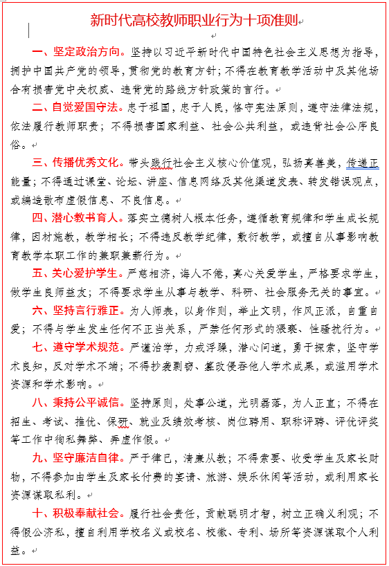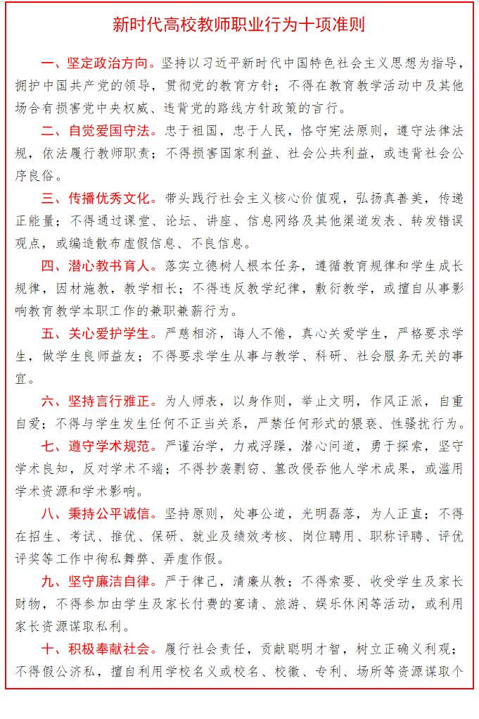 新时代高校教师职业行为十项准则