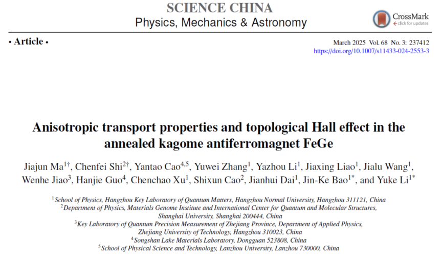 本研究首次发现了kagome材料FeGe体系中异常的各向异性输运性质,这些性质主要依赖于其特殊的能带结构和强耦合的电荷与磁有序关联。此外,我们还首次发现了其在倾斜反铁磁态中出现的异常拓扑霍尔效应,并将其归因于非共线自旋的拓扑结构特征。