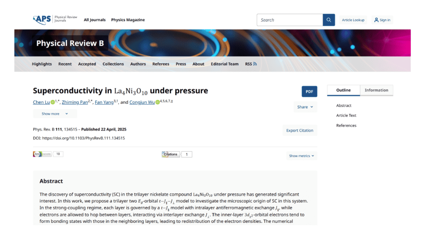 论文网址://journals.aps.org/prb/abstract/10.1103/PhysRevB.111.134515