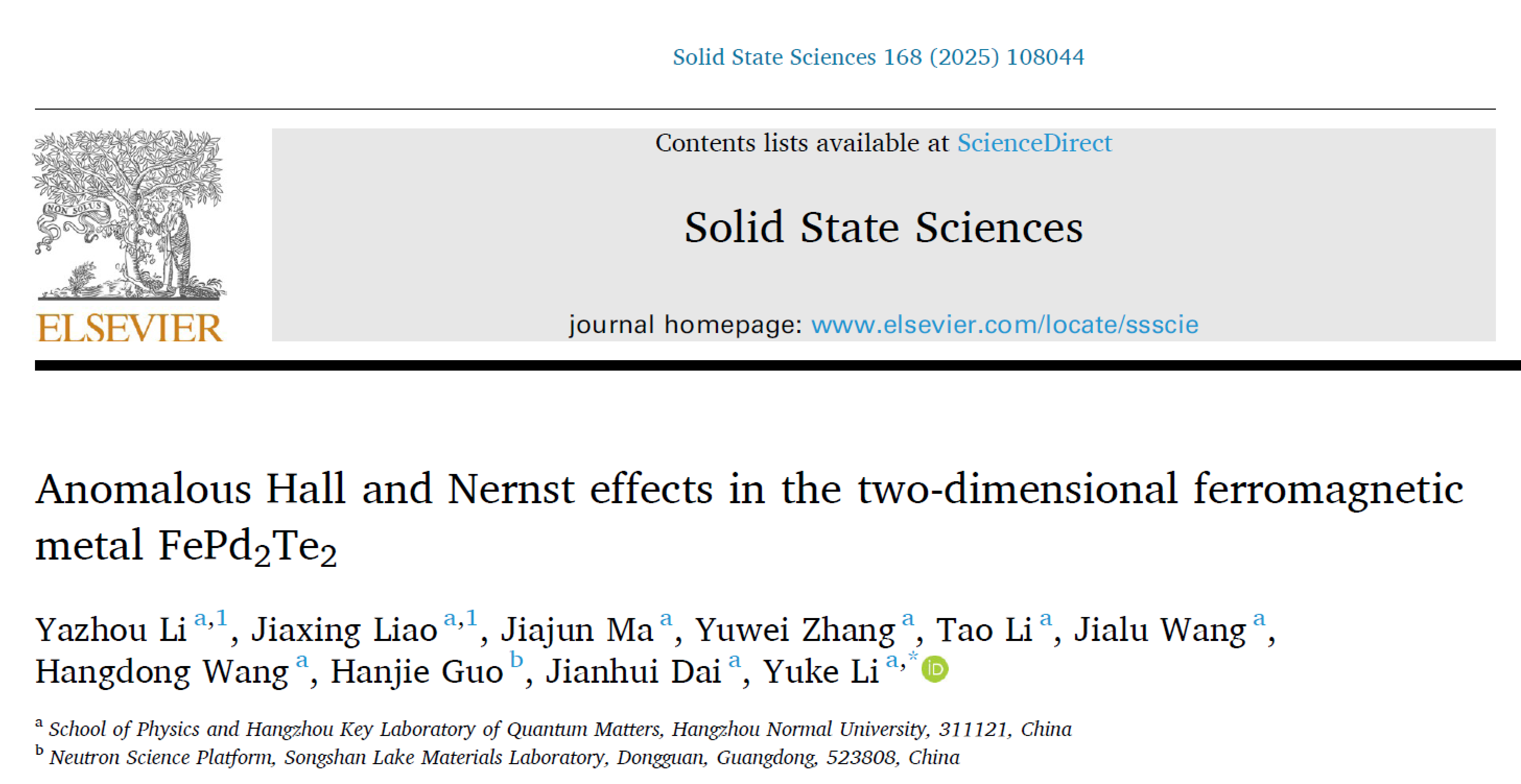 内容简介:最近,熊猫体育 李玉科课题组研究了二维范德华铁磁化合物FePd2Te2的反常热电输运性质。研究团队采用固相反应法合成了高质量单晶样品,并对其磁性和热电输运性质进行了详细表征。结果表明,该材料在居里温度以下表现出显著的零场反常霍尔效应AHE和反常能斯特效应(ANE),并伴随明显的磁滞回线。其反常能斯特信号(Sʏₓᴬ)在100 K时达到峰值0.15 μV/K,远高于常规铁磁材料。横向热电系数比 |αxyᴬ/σxyᴬ| 接近理论极限值kB/e = 86 μV/K。这些现象说明其反常输运行为主要来自于贝里曲率(Berry curvature)贡献,也表明FePd₂Te₂是一种具有强拓扑特性的二维铁磁材料。