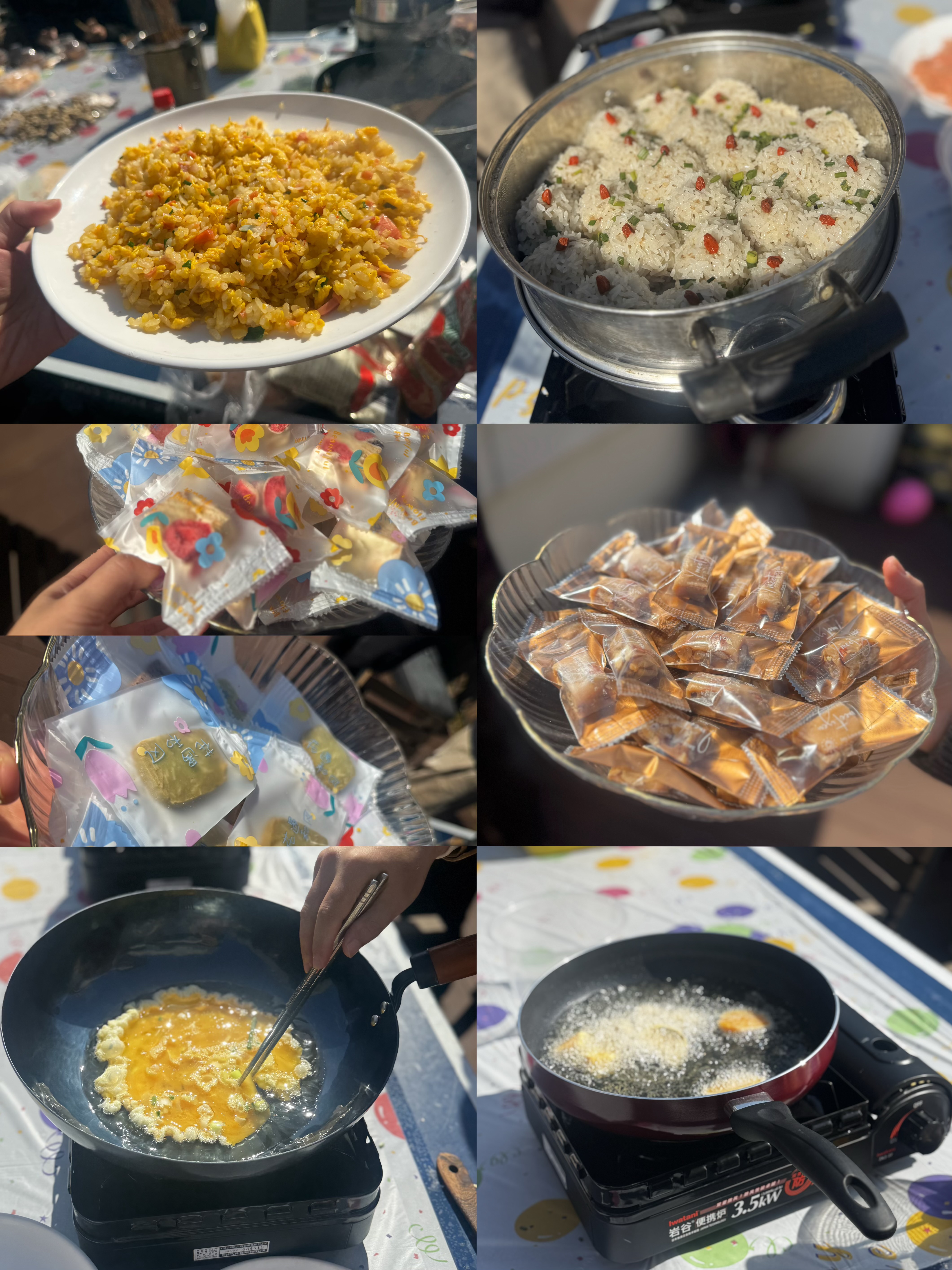 比赛现场,热闹非凡。参赛选手们带来了各自的拿手菜,如制作拉丝红薯的选手已将制作过程烂熟于心,只见她先将红薯切成大小均匀的块状,放入油锅中炸至金黄酥脆,然后迅速将炸好的红薯倒入熬好的糖浆中,快速翻炒。不一会儿,一根根晶莹剔透的糖丝便将红薯紧紧包裹起来,宛如一件件精美的艺术品,在阳光下闪烁着诱人的光泽;有的选手将普通的番茄炒蛋进行了创新,加入了独特的调料和配菜,让这道家常菜焕发出了新的生机与活力;还有的选手制作了传统的黄金炒饭,那金黄的米粒颗颗饱满,闪烁着诱人的光泽,搭配上翠绿的葱花,色彩搭配恰到好处,让人看了就食欲大增。
