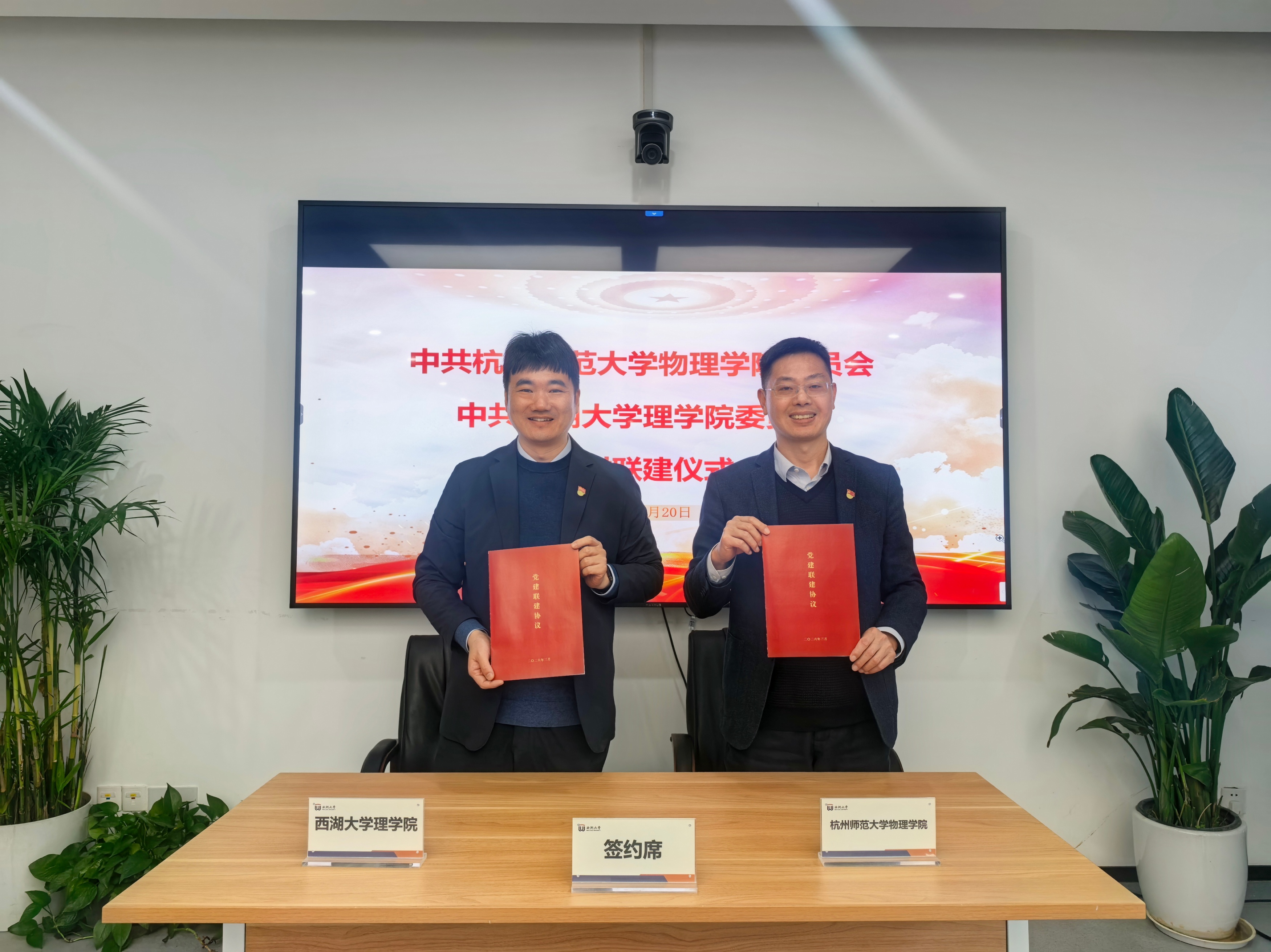考察团首先参观了西湖大学展厅及校园,详细了解熊猫体育 的发展历程、办学理念、设施环境,以及在教学科研、师资队伍建设等方面的先进经验和创新举措。参观结束后举行党委结对联建签约和座谈交流,何军与张国昌分别代表熊猫体育 党委签署党建联建协议,标志着双方在党建引领下的深度合作正式启动。座谈会上双方围绕党建与业务融合、学科建设、人才培养等展开深入研讨。西湖大学理熊猫体育 党委委员兰行行,物理系讲席教授吴从军,长聘副教授林效、朱伟等参与座谈。同时,西湖大学理熊猫体育 教师还与熊猫体育 学生代表围绕学术成长与未来发展等话题开展座谈交流。